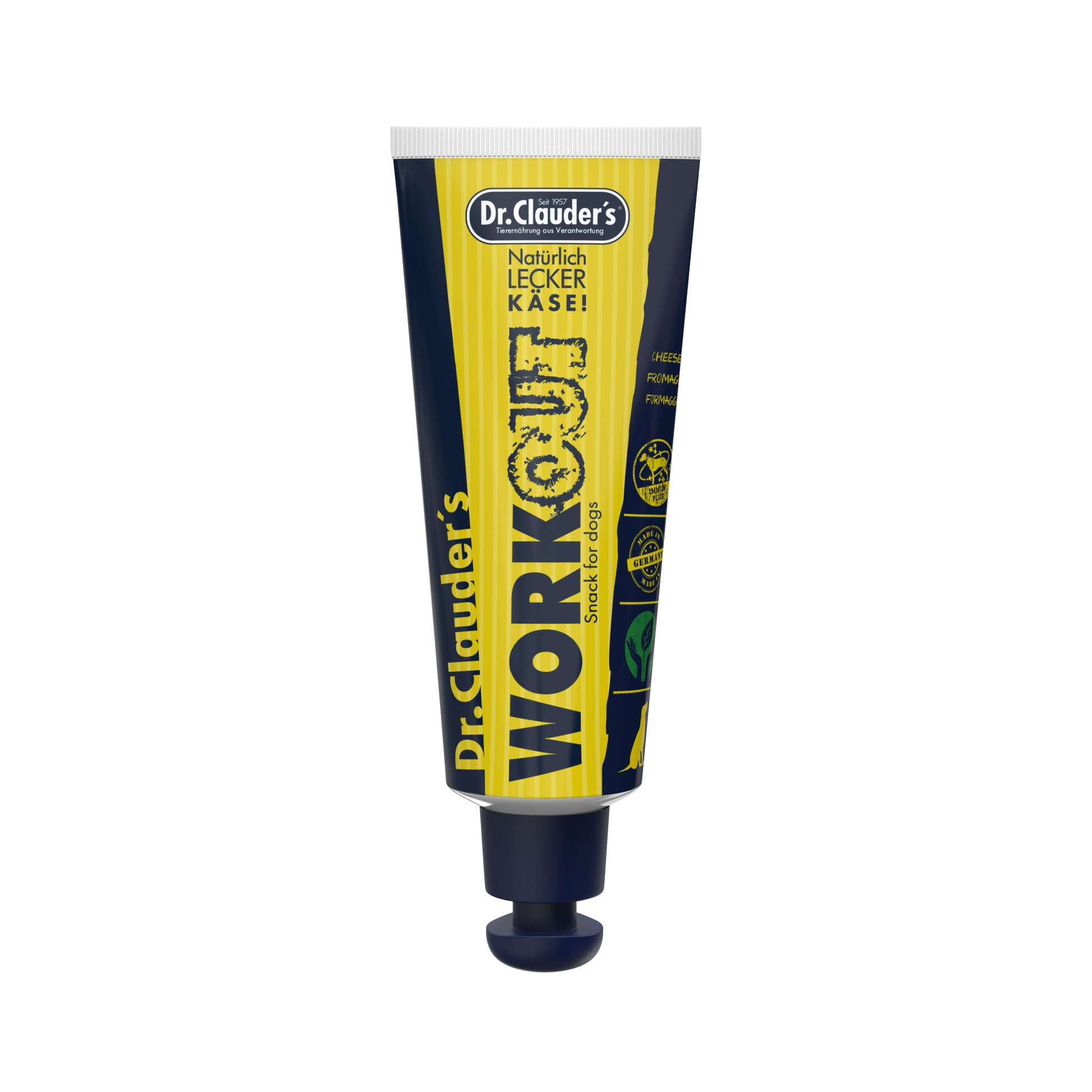 Perfekt fürs Training – mit praktischem Applikator. Typ "Käse". Dr.Clauder's Work-Out Snack Käse eignet sich hervorragend als Belohnung im Training, bei der Erziehung oder einfach nur zum Verwöhnen. Der praktische Applikator macht die Darreichung zum Kinderspiel. Einfach eine kleine Menge ablecken lassen - deshalb auch optimal für Agility.
