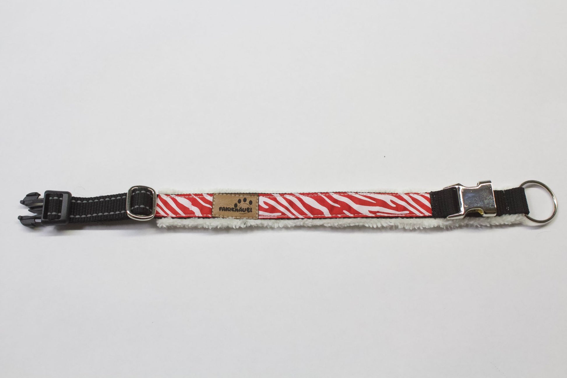 Stylisches Hundehalsband im Rot-Weißen Leopardenlook mit Kuschelplüsch