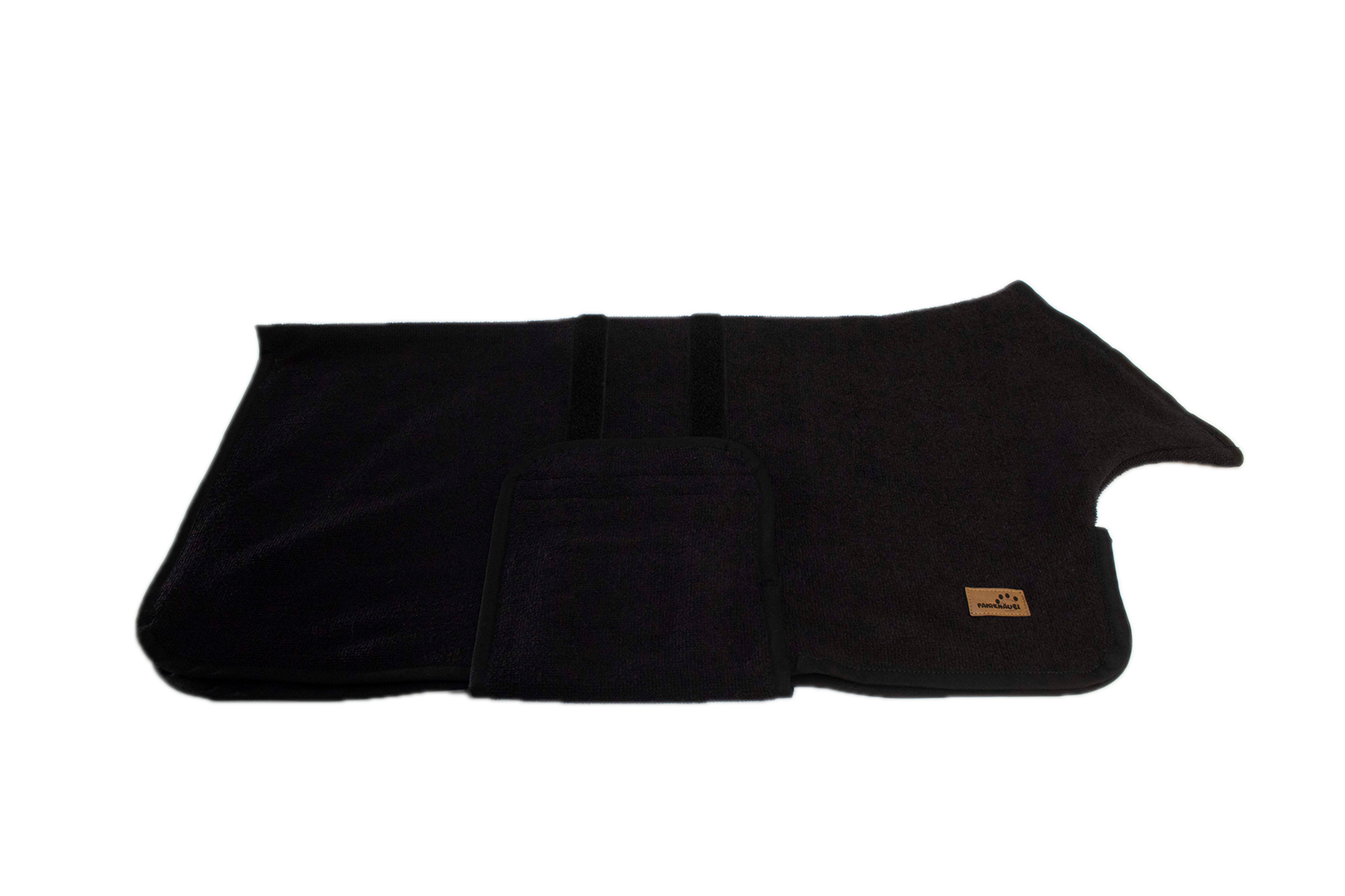 Erhältlich in 5 Größen: Egal ob kleiner Dackel oder großer Schäferhund – unser Hundebademantel ist in fünf verschiedenen Größen erhältlich, damit er jedem Hund perfekt passt. Messen Sie einfach die Rückenlänge Ihres Hundes und finden Sie die ideale Größe.