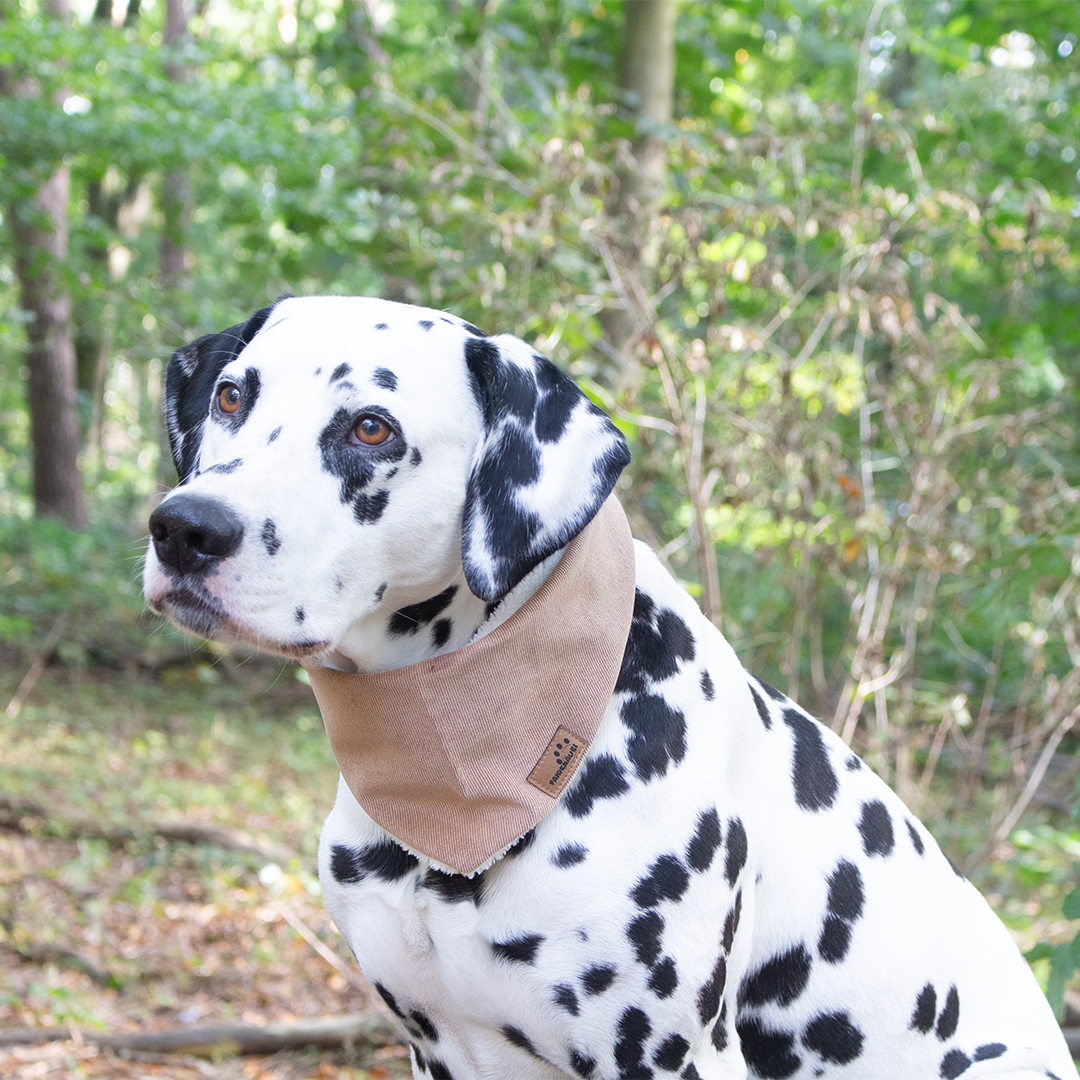 Zweischichtiges Design für Komfort und Stil: Die Außenseite aus hochwertigem Cord verleiht dem Halstuch nicht nur ein edles Aussehen, sondern macht es auch langlebig und pflegeleicht. Die Innenseite aus weichem Polyester-Plüsch sorgt dafür, dass sich Ihr Hund rundum wohlfühlt und das Halstuch gerne trägt.